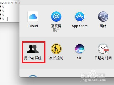 在系统偏好设置的右下角可以看到有个用户和群组,双击这个图标,打开用户和群组设置。