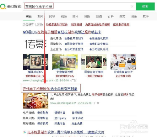 在浏览器的搜刮栏输入在线建造电子相册,在呈现的链接中选择第二个小年糕有声影集;