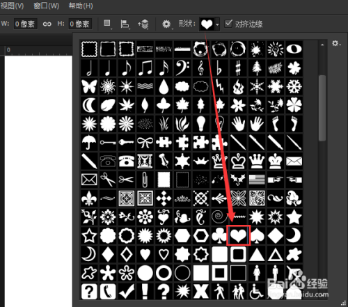 画布新建好了之后,打开自界说东西,选择一个心形的图标。