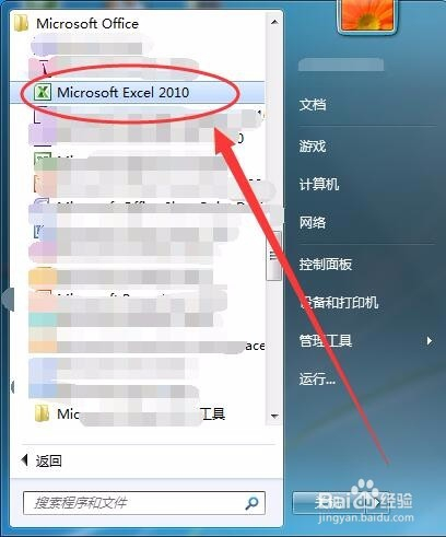 单击起头---->所有法式---->Microsoft Office,选择Microsoft Excel 2010选项。
