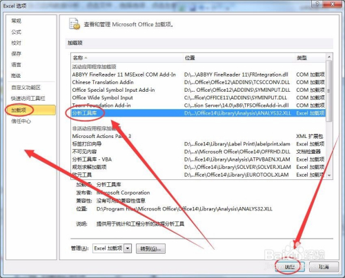 加载项中,选择阐发东西库选项,单击确定。