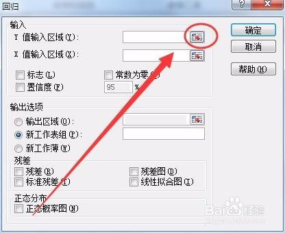 单击回归后方的按钮回到回归对话框中,如下图所示。