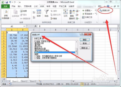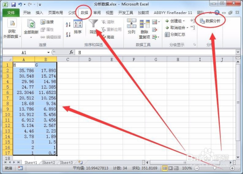 接着,回到数据表格中,打开数据阐发选项。