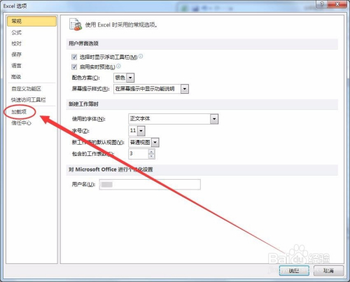 Excel选项中,选择加载项选项。