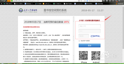 1.预约地址 http://seat.lib.whu.edu.cn