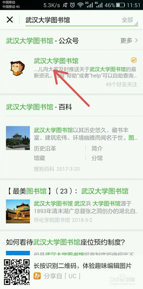 1.打开手机微信,存眷“武汉年夜学藏书楼”公家号;若是显示“该用户不存在”,则点击下面的“搜一搜”,点击有小布头像的“武汉年夜学藏书楼”