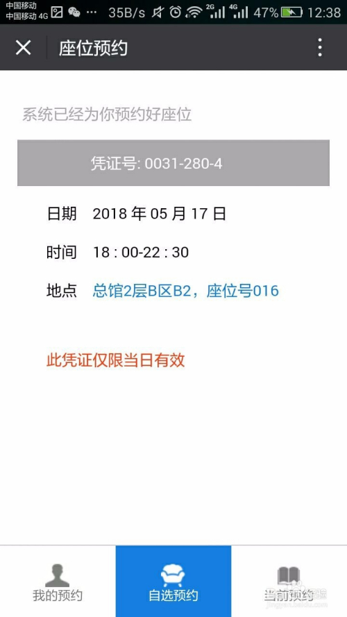 5.如许我们就预约好了座位。座位是“总馆2层B区B2,座位号016”