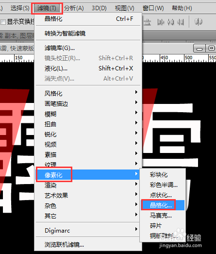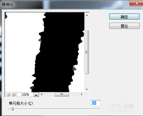然后点击菜单栏:滤镜→像素化→晶格化。晶格化单位格大小设定为15摆布即可,可边改数字大小边预览图层结果。
