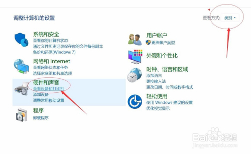 点击“硬件与声音”->“查看设备和打印机”,如下图所示: