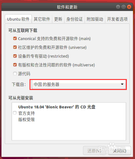 选择软件和更新