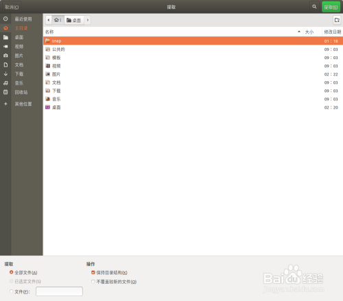 左侧选择本家儿目次,然后选右上角提取
