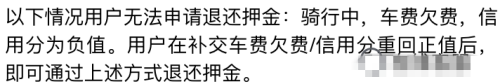 若是,欠车资、信用值为负值,将无法申请退还押金。