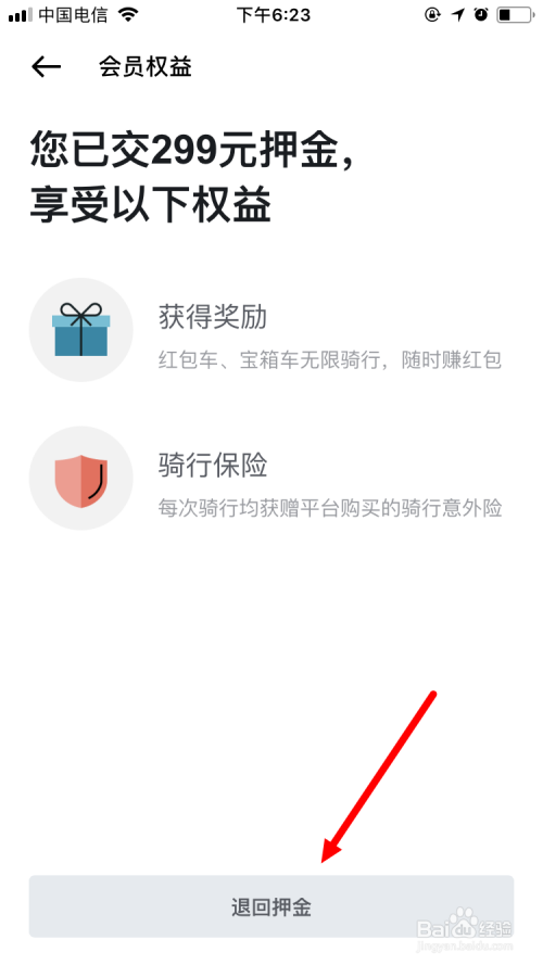 接着点击退回押金。