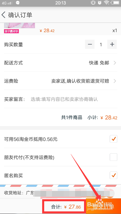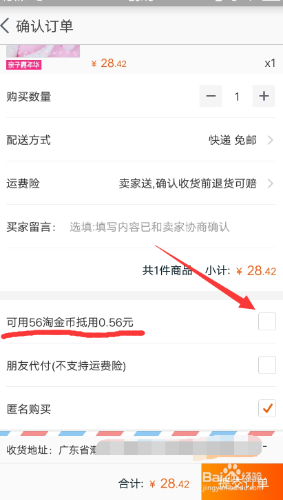 如许合计金额就削减了0.56元,然后再提交订单。