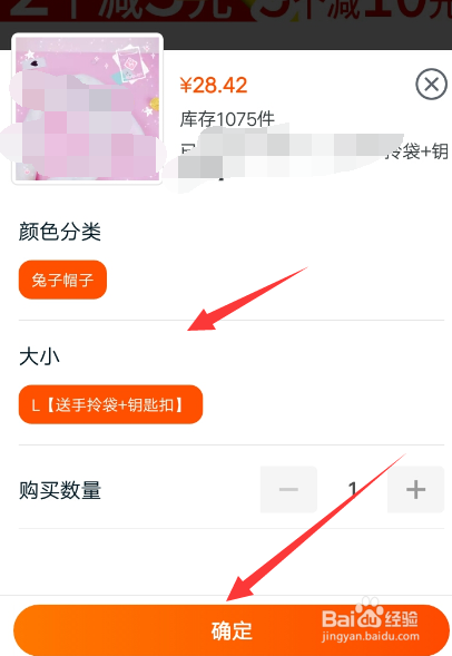 选摘要采办商品的具体规格,然后点击确定。