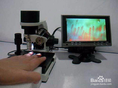 将被查抄指甲伸到本家儿机的目镜下。调节目镜高度,是显示屏上的图像根基清楚。再调节微调旋钮,使显示屏上的图像更清楚。