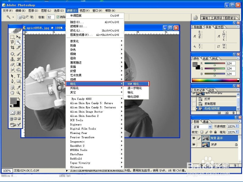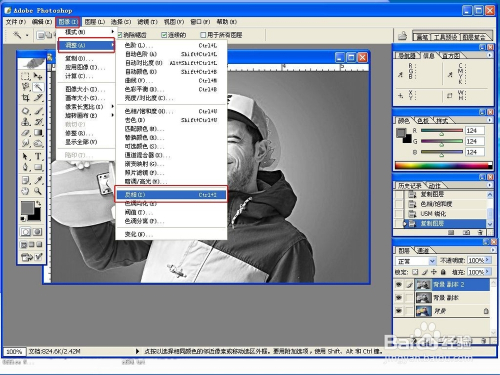 点击 图像——调整——色相饱和度 ,对图片进行去色处置。(快捷键CTRL+U)