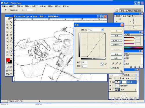 调整曲线,增添对比度。(其实也可以用色阶东西调整)