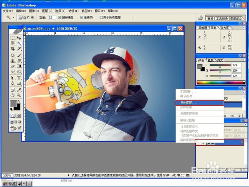 打开图片后,右键点击 布景图层,复制图层。(快捷键CTRL+J)