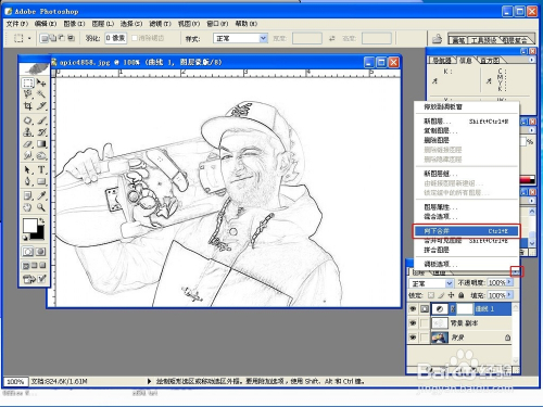 这个图是抽好线后,将原始图层转当作口角然后加了个 木刻 结果。
