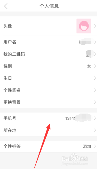 在设置界面点击小我信息设置选项。在小我信息界面点击手机号选项。