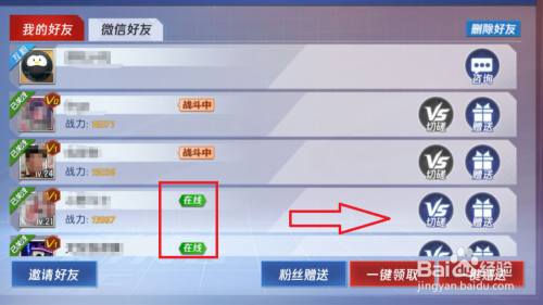 此刻框卡处每个友者这栏的后端都有个‘切磋’的圈状,若是显灰色申明此友正在战中,不成切磋,若是呈蓝,就能互磋。