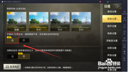 下拉列表,在【抗锯齿】中选择【封闭】,这个打开敌手机有不小的影响。