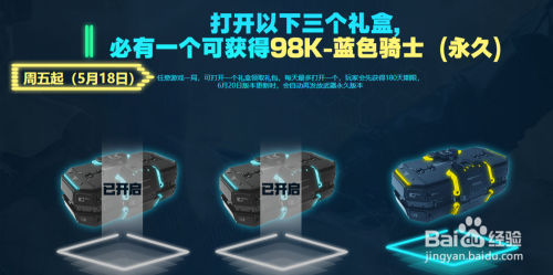 从活动起头,天天登岸游戏完当作游戏使命后,就可以在活动页面打开宝箱,必定能活动永远的98K绝版道具。