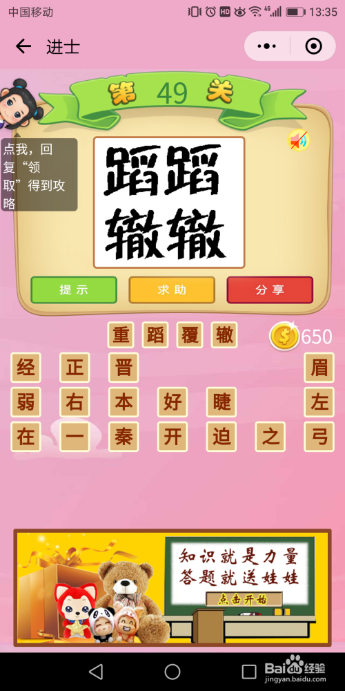 进士52关:图案是一扇打开着的门外是重峦叠嶂的群山,那么就是当作语【开宗明义】。
