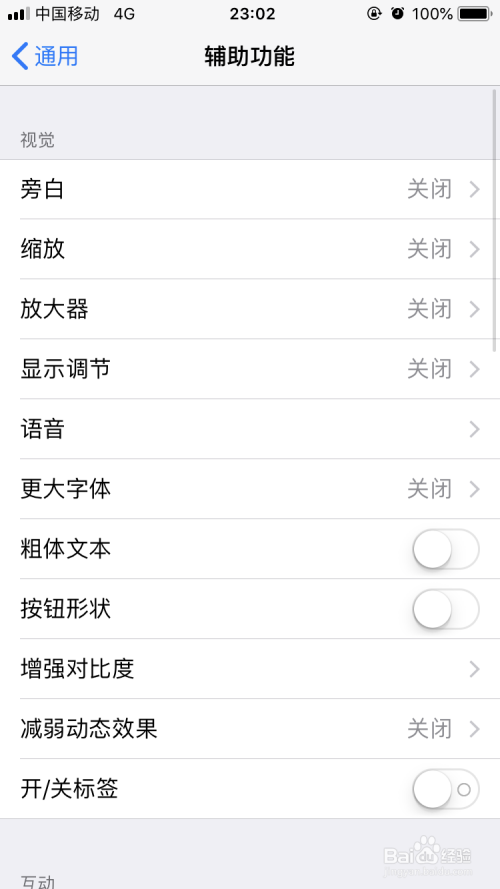 在通用里面,有一个辅助功能,我们点击右侧的小箭头。