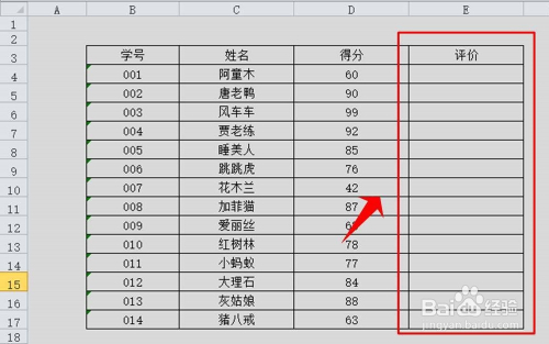 首先,新建一个excel工作表,将学生的学号、姓名、成就等根基信息录入到表格中,如图所示。