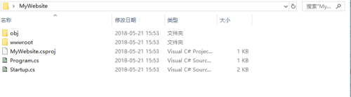 .NET Core CLI 会在该文件夹,建立一个空的 ASP.NET Core 模板,內容如下图所示: