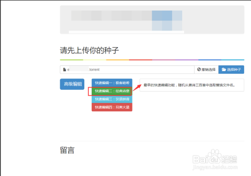 5. 选择如图所示的【快速编纂2:诗意】;利用唐诗替代种子内的文件名。点击即可下载点窜后的种子文件。