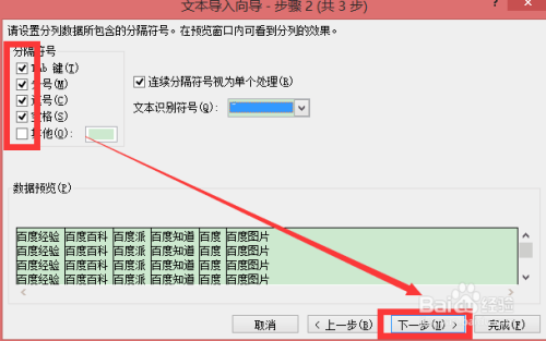 可以按照本身的需要选择分隔符号,我们这里把分号、逗号、空格也全都勾选,然后点击“下一步”。