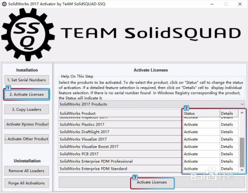 许可证和谈,单击【2.Active Licenses】,标的目的下滚动滑条,查抄右侧"Status"列中是否均为“Activate”,全数是即可单击【Activate Licenses】,此操作后会弹出3个窗口,别离点“Yes”“Yes”“OK”。