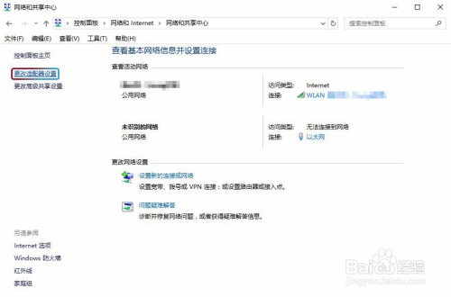单击‘更改适配器设置‘超链接。