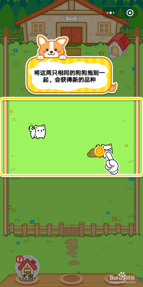 当你拥有两只狗狗后,就可以在屏幕上选中此中一只狗狗拖动到另一只狗狗身上,两只狗狗就汇合体,并酿成别的一种狗狗。