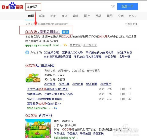 在百度里搜刮QQ农场,点下面的QQ农场官网;