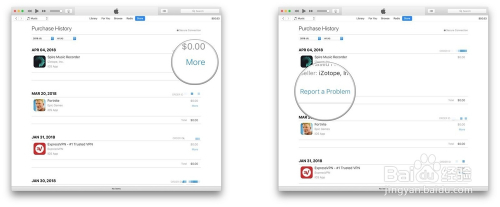 5、点击您想要退条目的应用旁边的更多。若是您没有看到所需的应用,则需要从采办汗青记实下拉列表中选择日期规模。