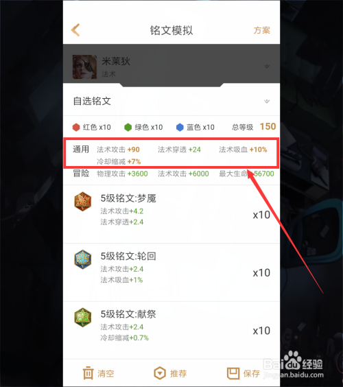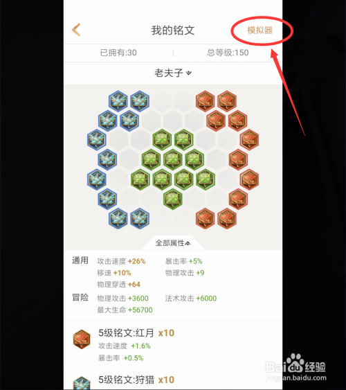 我们模拟好铭文之后,系统就会弹出这套铭文的总属性加当作,还有冒险总属性加当作,大师感觉是不是很便利呢?