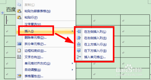 若是我们添加完表格后发现行数、列数或者单位格不敷,可以点击鼠标右键,然后选择“插入”→“在左侧插入列”等。