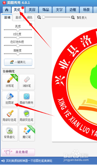 点击“美化”→“抠图笔”,选择主动抠图: