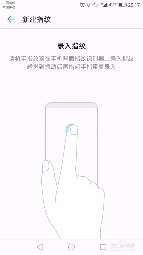点击“录入”,进入录指纹页面。将肆意手指放入手机后背的指纹识别处,录制指纹。录入时,需要整个图案都要识别美满,才算是指纹录入当作功。