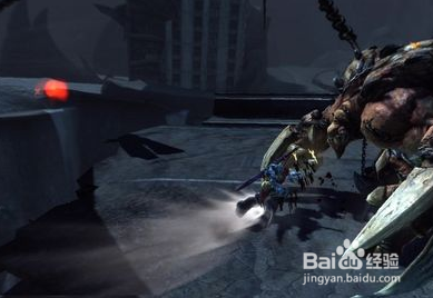 来到Broken Stair,进入右侧的年夜楼后往上爬,操纵二楼窗外的蓝色光球飞到对面的高架道路上。沿着高架道往前走,远处会呈现一只Trauma朝War来袭;闪开它抛来的报废车辆,待它接近后再将它击倒,高架桥边就会呈现另一颗蓝色光球,让玩家能朝地图上的金色导航点继续进步。
