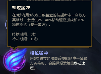 本家儿符文页第一个小符文选择相位猛冲 赵信因为Q的存在,进犯必定要3下以上,触发此符文很是简单,而移动速度和减速抗性的加当作,可以让赵信更好的捏住敌方英雄,不使其逃走。