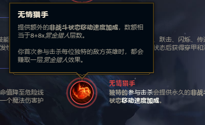 副符文页第二个小符文选择无情猎手 提高非战斗状况下的移动速度, 作为上单赵信,根基上14分推是经常呈现的工作,因为赵信自身推塔带线能力都长短常强的,所以移动速度很是主要。