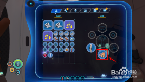 第二步点击人体的阿谁图标然后选择装备,找到脚蹼进行建造。