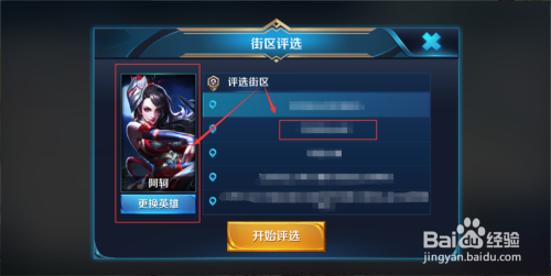 然后在截取评选页面中选择你要介入评选的英雄以及具体的评选区域,然后再点击【起头评选】,如下图所示。