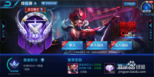 首先我们进入王者荣耀游戏傍边,点击本家儿页面中部的【排位赛】进口处,如下图所示。