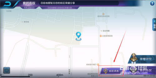 然后就会定位到你所出的街区,点击右下方的【街区评选】,如下图所示。